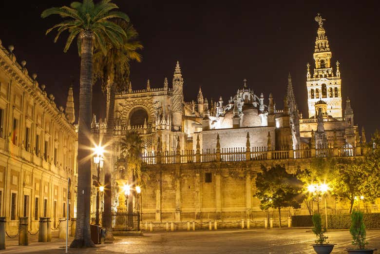Visita serale alla cattedrale di Siviglia+ Spettacolo di luci e suoni